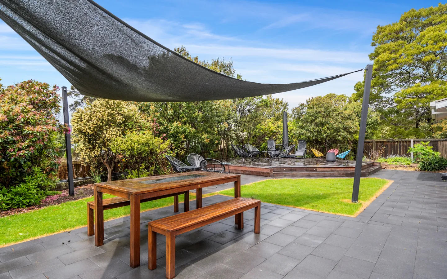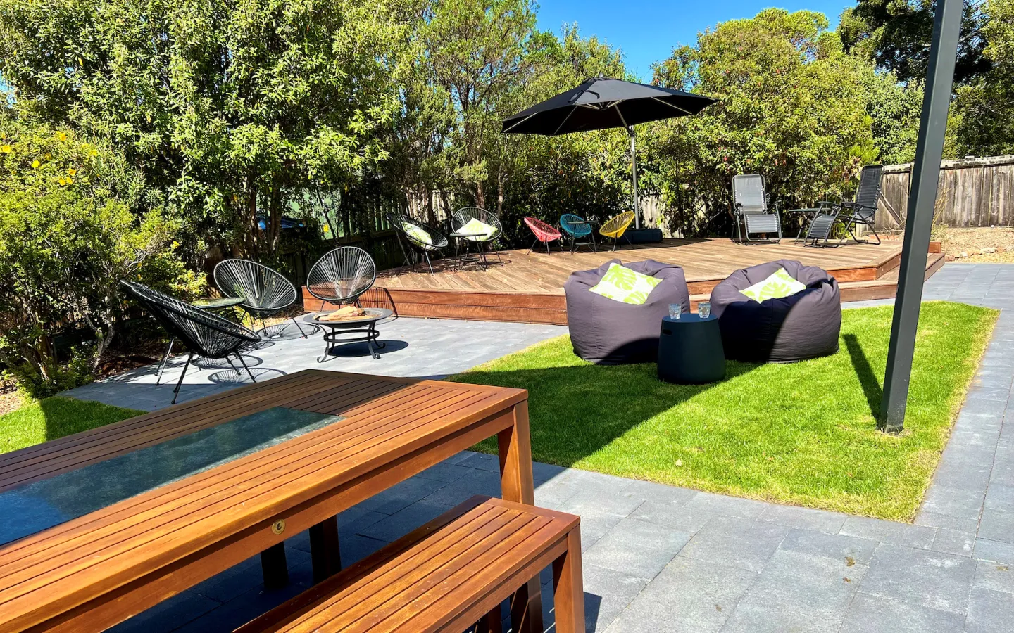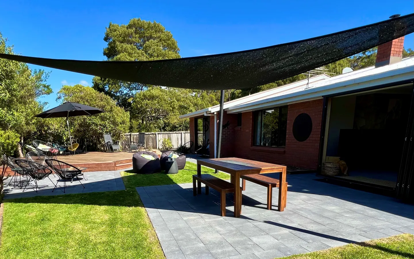 The living area has access to a large outdoor area and deck that is surrounded by a natural landscape garden and bird life. Take in the view of the beautiful flower garden from the master bedroom. There are multiple seating areas, making it the ideal place to gather or find a private corner for relaxing. Lumeah Retreat also has a fully functioning kitchen, a dining room, a large fully fenced backyard, a wood heater, reverse cycle air conditioning, a BBQ and deck, and is only 250 meters to the beach.