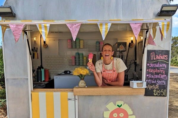 Offer delicious ice creams made with real fruits. The van operates primarily on weekends and occasionally on hot weekdays, appearing at various locations around Bruny.